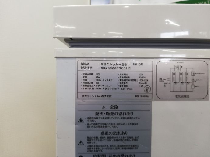 ☆★ シェルパ 冷凍ストッカー 197-OR 2020年製 190L ☆★